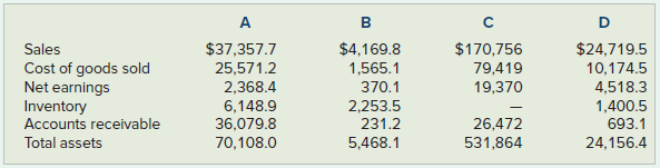 The data for the companies, presented in the order of the amount of their sales in millions of dollars, are as follows.