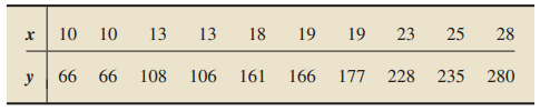 > The Kelley Blue Book provides information on wholesale and retail prices of cars. Following are age and price data for 10 randomly selected Corvettes between 1 and 6 years old. Here, x denotes age, in years, and y denotes price, in hundreds of dollars.