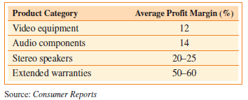 (b) Determine the average profit of a store that has a list price of $1200 on a pair of speakers (use a 22% profit margin).