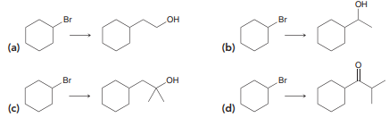 > Identify the reagents that you would use to accomplish each of the following transformations: .d- Br OH он Br он (b) OH - Lo он (e) (f) но