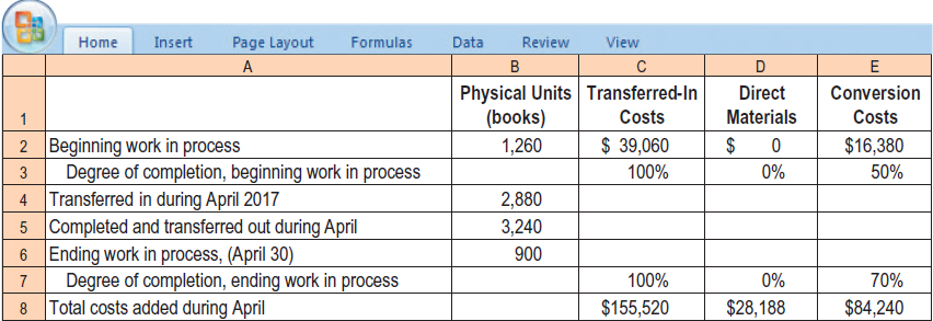 Publishers, Inc., has two departments: printing and binding. Each department has one direct-cost category (direct materials) and one indirect-cost category (conversion costs). This problem focuses on the binding department. Books that have undergone the printing process are immediately transferred to the binding department. Direct material is added when the binding process is 70% complete. Conversion costs are added evenly during binding operations. When those operations are done, the books are immediately transferred to Finished Goods. Publishers, Inc., uses the weighted-average method of process costing. The following is a summary of the April 2020 operations of the binding department.