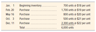 QP Corp. sold 4,000 units of its product at $50 per unit during the year and incurred operating expenses of $5 per unit in selling the units. It began the year with 700 units in inventory and made successive purchases of its product as follows.