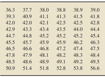 R. Reifen et al. studied various nutritional measures of Ethiopian school children and published their findings in the paper “Ethiopian-Born and Native Israeli School Children Have Different Growth Patterns” (Nutrition, Vol. 19, pp. 427– 431). The study, conducted in Azezo, North West Ethiopia, found that malnutrition is prevalent in primary and secondary school children because of economic poverty. The weights, in kilograms (kg), of 60 randomly selected male Ethiopian-born school children aged 12– 15 years old are presented in increasing order in the following table.