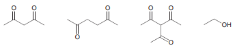 > Draw the enolate ion that is formed when each of the following compounds is treated with sodium ethoxide. In each case, draw all resonance structures of the enolate ion and predict whether a substantial amount of starting ketone will be present together