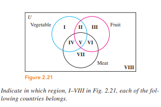 > Rankings of Countries In Exercises 15–20, use the following table, which shows the top 10 countries for per person consumption of vegetables, fruit, and meat. The universal set is the set of countries in the world United States