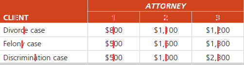 Ravi Behara, the managing partner at a large law firm in Virginia, must assign three clients to three attorneys. Cost data are presented in the following table: