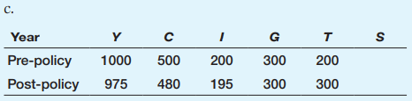 > Recall that we define taxes, T, as net of transfers. In other words, T = Taxes - Transfer Payments a. Suppose that the government increases transfer payments to private households, but these transfer payments are not financed by tax increases. Instead,