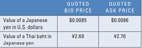 2. Besides the bid and ask quotes for the Thai baht provided in the previous question, Minzu Bank has provided the following quotations for the U.S. dollar and the Japanese yen:
