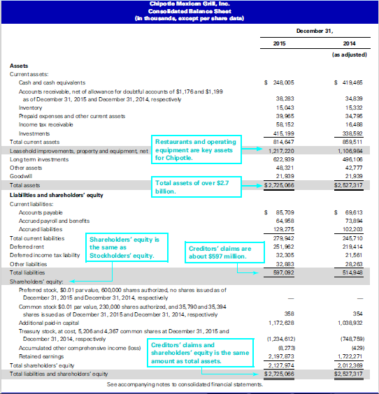 Refer to Chipotleâs balance sheet reproduced in the chapter.