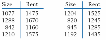 A recent graduate moving to a new job collected a sample of monthly rent ( dollars) and size (square feet) of 2-bedroom apartments in one area of a Midwest city.