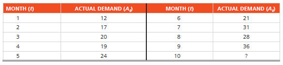 > Consider the following actual (A t) and forecast (F t) demand levels for a commercial multiline telephone at Office Max: The first forecast, F1, was derived by observing A1 and setting F1 equal to A1. Subsequent forecast averages were derived by expone