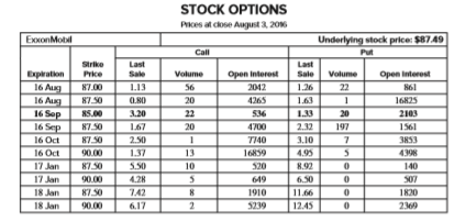 a. How many ExxonMobil October 2016 $90.00 put options were outstanding at the open of trading on August 3, 2016?