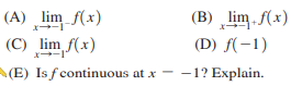> Refer to the function f shown in the figure. Use the graph to estimate the indicated function values and limits.