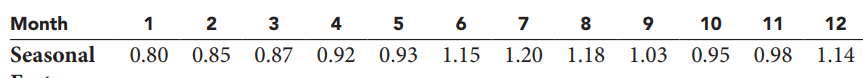 > Use Holt-Winter’s multiplicative method to create a seasonal model that minimizes the MSE for the data set. Use Solver to determine the optimal values of a, b, and g. a. What are the optimal values of a, b, and g? b. Prepare a line graph comparing the pr