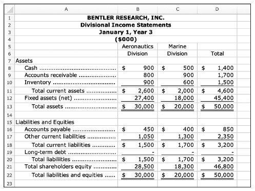 In order to consider the presidentâs complaint, the company considers some additional information. First, divisional balance sheets as of January 1, year 3, follow.