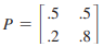 > Repeat Problem 77 for the transition matrix A matrix is called a probability matrix if all its entries are real numbers between 0 and 1, inclusive, and the sum of the entries in each row is 1. So transition matrices are square probability matrices and