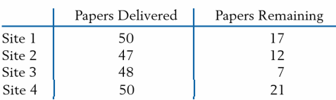 A community paper in the Spanish language was delivered to many sites in the San Francisco Bay area. As a check on the circulation numbers that are important to advertisers, a survey was conducted at four drop sites. The number of papers delivered to each site and the number remaining after 3 days was recorded.