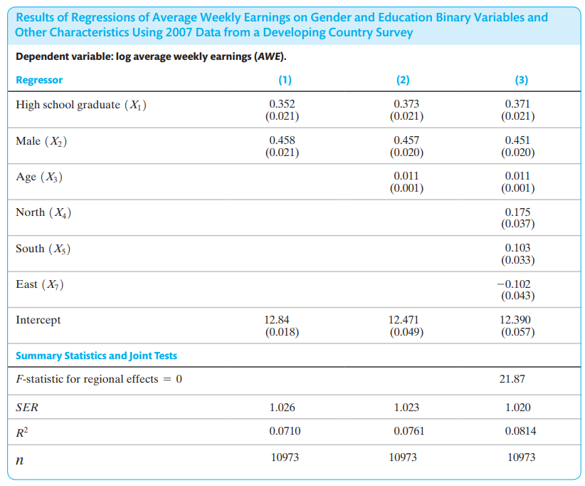 b. Show how to construct the homoskedasticity-only F-statistic for testing ï¢4 = ï¢5 = ï¢6 = 0 in the regression shown in column (3). Is the statistic significant at the 1% level?