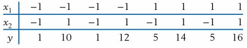 (a) Fit a multiple regression model with response variable y. Note that the equations in the middle of page 391 simplify for these data. (b) Verify your answer using software.