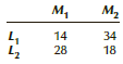 > Conduct a test to determine whether the two classifications L and M are independent, using the data in the accompanying cross-classification table. (Use  = .05.) M, M2 28 68 56 36