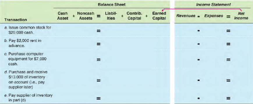 > Following the example in a below, indicate the effects of transactions b through ion assets, liabilities, and equity, including identifying the individual accounts affected. a. Paid cash to acquire a computer for use in office ANSWER: Increase assets (Of