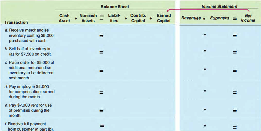 > Would each of the following transactions increase, decrease, or have no effect on equity? a. Paid cash to acquire supplies. b. Paid cash for dividends to shareholders. c. Paid cash for salaries. d. Purchased equipment for cash. e. Shareholders invested c
