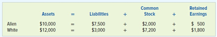 Common Retained Assets Llabilities Stock Earnings $10,000 $12,000 $7,500 $3,000 $2,000 $7,200 $ 500 $1,800 Allen White + + + + + + I|||