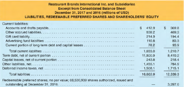 Restaurant Brands International, Inc. reports the following in footnote 13 to their financial statements in their 2017 I 0-K related to redeemable preferred stock.