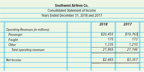 Review the following excerpt from the 2018 consolidated statement of income for Southwest Airlines Co. Answer the questions that follow.