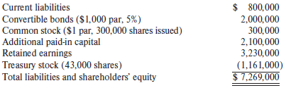 The convertible bonds were issued at par in 20X0 and are convertible into Riggsâs common stock at a ratio of 20 shares of stock to 1 bond. In its December 31, 20X2, annual report, Riggs reported 125,000 exercisable qualified stock options. Each option allows the holder to acquire one share of common stock for $19 per share. All of the options were outstanding at the end of