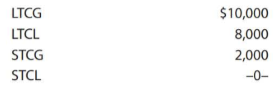 LTCG $10,000 LTCL 8,000 STCG 2,000 STCL -0-