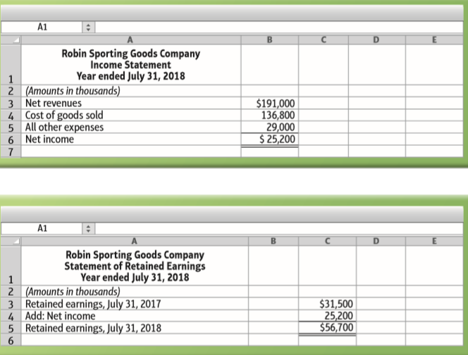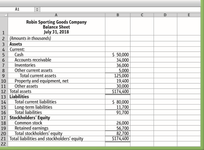 Robin Sporting Goods reported the following data at July 31, 2018, with amounts in thousands: