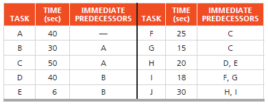TIME IMMEDIATE TIME PREDECESSORS TASK (sec) IMMEDIATE PREDECESSORS TASK (sec) A 40 F 25 B 30 A G 15 50 A 20 D, E D 40 B 18 F, G 6 30 H, I