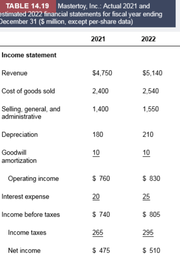 Scott Kelly is reviewing Master Toyâs financial statements to estimate its sustainable growth rate. Using the information presented in Table 14.19: