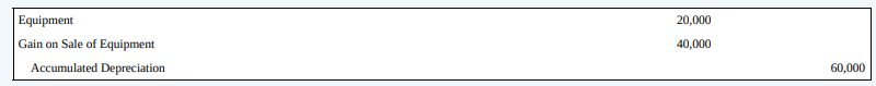 Equipment 20,000 Gain on Sale of Equipment 40,000 Accumulated Depreciation 60,000 Accumulated Depreciation 5,000 Depreciation Expense 5,000