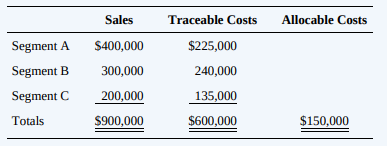Allocable costs are assigned based on the ratio of a segmentâs income before allocable costs to total income before allocable costs. This is an appropriate method of allocation. Segment Bâs profit for 20X2 is