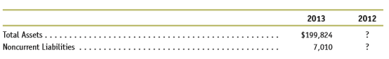 2013 2012 Total Assets $199,824 Noncurrent Liabilities 7,010 2013 2012 $ 17,368 Noncurrent Assets... Total Liabilities and Shareholders' Equity ? ? current Liabilities. 139,941 126,853 Shareholders' Equity 53,721 Total Liabilities... current Assets 170,879 170,234