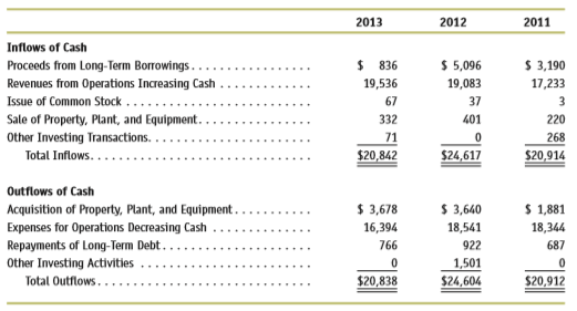 Selected data from the statement of cash flows for Jackson Corporation for the years ended October 31, 2013, 2012, and 2011 appear as follows (amounts in millions of US$):