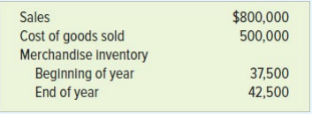 Sales $800,000 Cost of goods sold Merchandise Inventory Beginning of year End of year 500,000 37,500 42,500