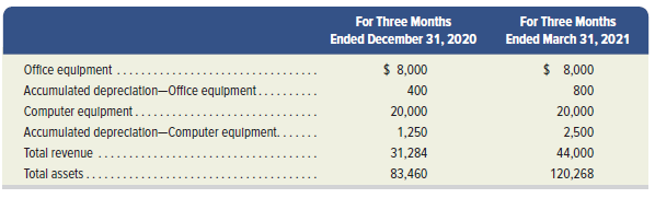 1. Assume that Business Solutions does not acquire additional office equipment or computer equipment in 2021. Compute amounts for the year ended December 31, 2021, for Depreciation ExpenseâOffice Equipment and for Depreciation ExpenseâComputer Equipment (assume use of the straight-line method).
