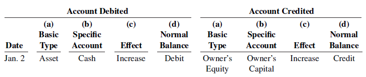 a. The basic type of account debited and credited (asset, liability, ownerâs equity).