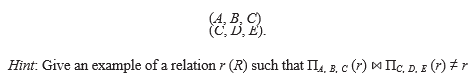 Show that the following decomposition of the schema R of Exercise 7.1 is not a lossless decomposition: