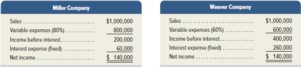 Shown here are condensed income statements for two different companies (assume no income taxes).