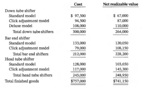 7. Sier applies the lower of cost and net realizable value method to each of the three types of shifters in finished goods inventory. For each of the other three inventory accounts, Sier applies the lower of cost and net realizable value method to the total of each inventory account.