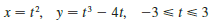 Sketch the curve by using the parametric equations to plot points. Indicate with an arrow the direction in which the curve is traced as increases.