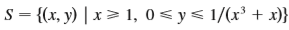 s = {(x, y) | x > 1, 0 < y< 1/(x³ + x)}