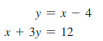 > Find the x and y coordinates of the intersection of the given lines. 6x - 5y = 120 and y = 3