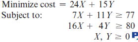 > Consider Paul Jordan’s following LP formulation: a) Graphically illustrate the feasible region to indicate to Jordan which corner point produces the optimal solution. b) What is the cost of this solution?