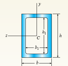 A hollow box beam with height h = 9.5 in, inside height h1 = 8.0 in, width b = 5.25 in, and inside width b1 = 4.5 in is shown in the figure.