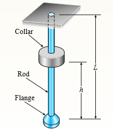 > A sliding collar of weight W = 150 lb falls from a height h = 2.0 in. onto a flange at the bottom of a slender vertical rod (see figure). The rod has a length L = 4.0 ft, cross-sectional area A = 0.75 in2, and modulus of elasticity E = 30 ×